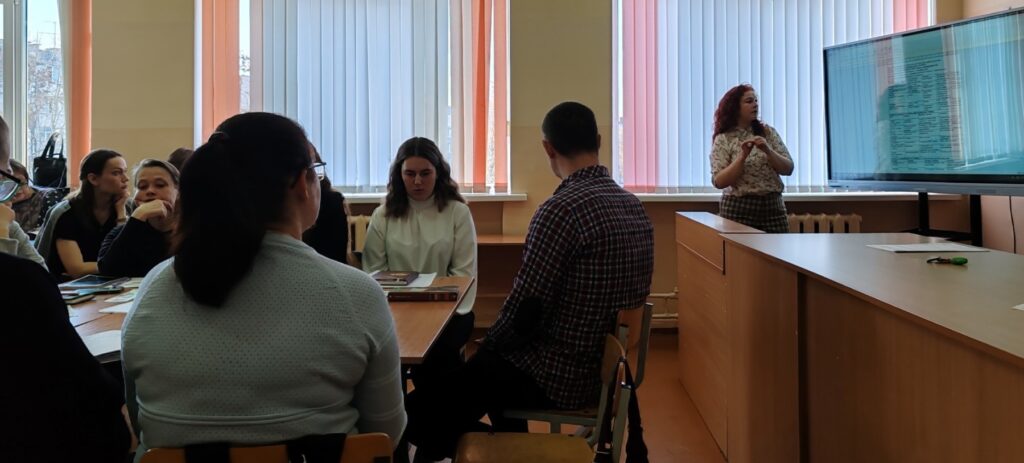 Теоретический блок открыла Марина Евгеньевна Рогач (учитель химии СШ №11). В своем выступлении она раскрыла специфику использования различных цифровых инструментов для планирования и подготовки дидактического содержания урока, представив коллегам обзор полезных платформ и сервисов, экономящих время и повышающих эффективность работы педагога.