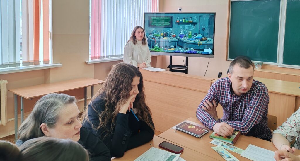 - В роли организаторов активного обучения выступили педагоги средней школы №8. Янина Юрьевна Черноокая, учитель химии и биологии, провела для присутствующих увлекательный научный квест «Расследование в лаборатории». Данный формат позволил участникам почувствовать себя в роли исследователей, применяя знания в нестандартной игровой ситуации.